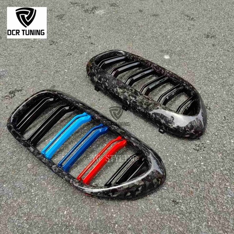 ตะแกรงคาร์บอนไฟเบอร์ปลอมแปลงสไตล์ M-Color พร้อมเครื่องหมายโลโก้สำหรับ BMW 5 Series Pre-lci G38 G30 F90 M5 2018-2020 G3O